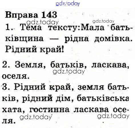 На страницах сайта gdz.today вы найдете учебный и вспомогательный материал, направленный на улучшения знаний школьной программы. ГДЗ - онлайн мир знаний Рішення до Вправи 143 Учебнику по Украинскому языку для 3 класса Вашуленко Украина 2013