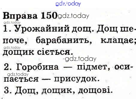 На страницах сайта gdz.today вы найдете учебный и вспомогательный материал, направленный на улучшения знаний школьной программы. ГДЗ - онлайн мир знаний Рішення до Вправи 150 Учебнику по Украинскому языку для 3 класса Вашуленко Украина 2013