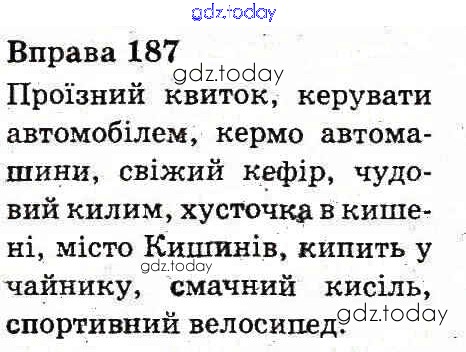 На страницах сайта gdz.today вы найдете учебный и вспомогательный материал, направленный на улучшения знаний школьной программы. ГДЗ - онлайн мир знаний Рішення до Вправи 187 Учебнику по Украинскому языку для 3 класса Вашуленко Украина 2013