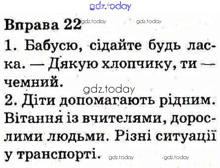 На страницах сайта gdz.today вы найдете учебный и вспомогательный материал, направленный на улучшения знаний школьной программы. ГДЗ - онлайн мир знаний Рішення до Вправи 22 Учебнику по Украинскому языку для 3 класса Вашуленко Украина 2013