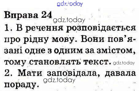 На страницах сайта gdz.today вы найдете учебный и вспомогательный материал, направленный на улучшения знаний школьной программы. ГДЗ - онлайн мир знаний Рішення до Вправи 24 Учебнику по Украинскому языку для 3 класса Вашуленко Украина 2013
