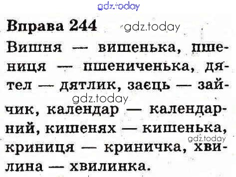 На страницах сайта gdz.today вы найдете учебный и вспомогательный материал, направленный на улучшения знаний школьной программы. ГДЗ - онлайн мир знаний Рішення до Вправи 244 Учебнику по Украинскому языку для 3 класса Вашуленко Украина 2013