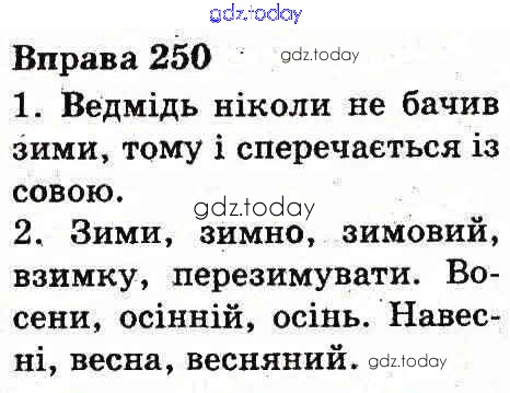 На страницах сайта gdz.today вы найдете учебный и вспомогательный материал, направленный на улучшения знаний школьной программы. ГДЗ - онлайн мир знаний Рішення до Вправи 250 Учебнику по Украинскому языку для 3 класса Вашуленко Украина 2013