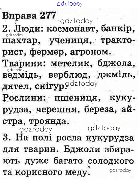 На страницах сайта gdz.today вы найдете учебный и вспомогательный материал, направленный на улучшения знаний школьной программы. ГДЗ - онлайн мир знаний Рішення до Вправи 277 Учебнику по Украинскому языку для 3 класса Вашуленко Украина 2013