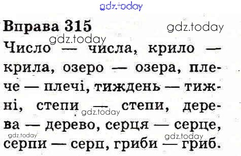 На страницах сайта gdz.today вы найдете учебный и вспомогательный материал, направленный на улучшения знаний школьной программы. ГДЗ - онлайн мир знаний Рішення до Вправи 315 Учебнику по Украинскому языку для 3 класса Вашуленко Украина 2013