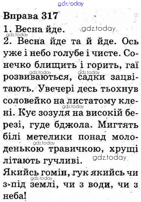 На страницах сайта gdz.today вы найдете учебный и вспомогательный материал, направленный на улучшения знаний школьной программы. ГДЗ - онлайн мир знаний Рішення до Вправи 317 Учебнику по Украинскому языку для 3 класса Вашуленко Украина 2013