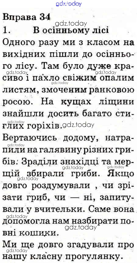 На страницах сайта gdz.today вы найдете учебный и вспомогательный материал, направленный на улучшения знаний школьной программы. ГДЗ - онлайн мир знаний Рішення до Вправи 34 Учебнику по Украинскому языку для 3 класса Вашуленко Украина 2013