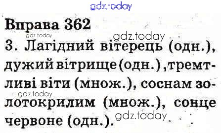 На страницах сайта gdz.today вы найдете учебный и вспомогательный материал, направленный на улучшения знаний школьной программы. ГДЗ - онлайн мир знаний Рішення до Вправи 362 Учебнику по Украинскому языку для 3 класса Вашуленко Украина 2013