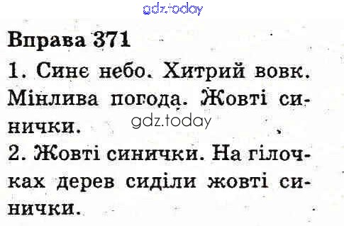 На страницах сайта gdz.today вы найдете учебный и вспомогательный материал, направленный на улучшения знаний школьной программы. ГДЗ - онлайн мир знаний Рішення до Вправи 371 Учебнику по Украинскому языку для 3 класса Вашуленко Украина 2013