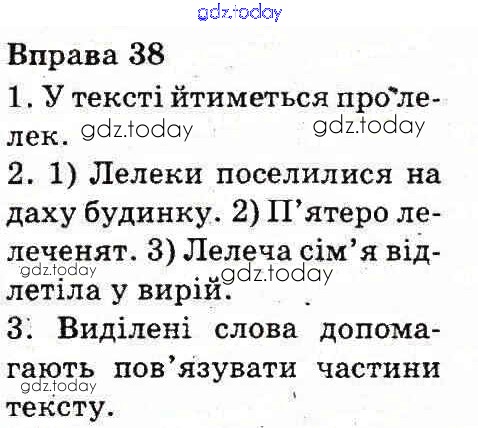 На страницах сайта gdz.today вы найдете учебный и вспомогательный материал, направленный на улучшения знаний школьной программы. ГДЗ - онлайн мир знаний Рішення до Вправи 38 Учебнику по Украинскому языку для 3 класса Вашуленко Украина 2013
