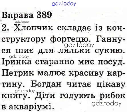 На страницах сайта gdz.today вы найдете учебный и вспомогательный материал, направленный на улучшения знаний школьной программы. ГДЗ - онлайн мир знаний Рішення до Вправи 389 Учебнику по Украинскому языку для 3 класса Вашуленко Украина 2013