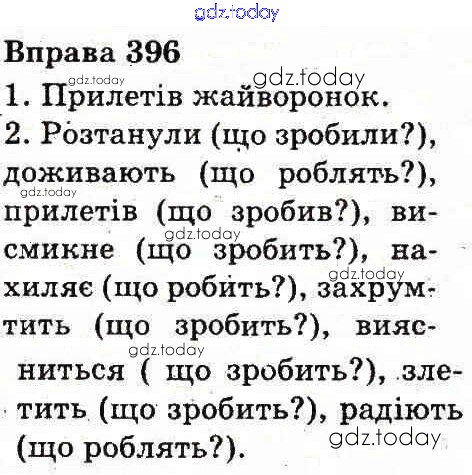 На страницах сайта gdz.today вы найдете учебный и вспомогательный материал, направленный на улучшения знаний школьной программы. ГДЗ - онлайн мир знаний Рішення до Вправи 396 Учебнику по Украинскому языку для 3 класса Вашуленко Украина 2013