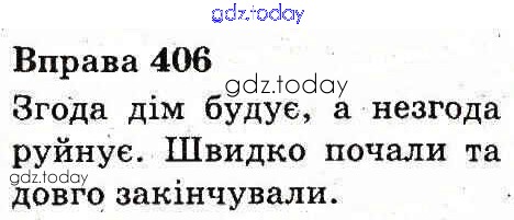 На страницах сайта gdz.today вы найдете учебный и вспомогательный материал, направленный на улучшения знаний школьной программы. ГДЗ - онлайн мир знаний Рішення до Вправи 406 Учебнику по Украинскому языку для 3 класса Вашуленко Украина 2013