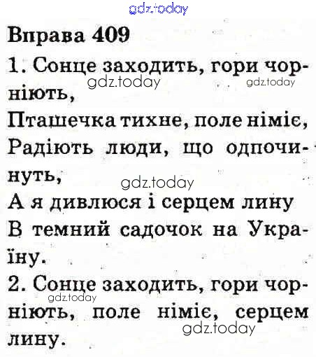На страницах сайта gdz.today вы найдете учебный и вспомогательный материал, направленный на улучшения знаний школьной программы. ГДЗ - онлайн мир знаний Рішення до Вправи 409 Учебнику по Украинскому языку для 3 класса Вашуленко Украина 2013