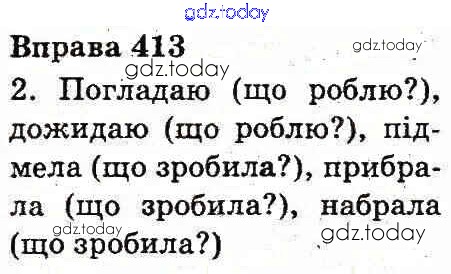 На страницах сайта gdz.today вы найдете учебный и вспомогательный материал, направленный на улучшения знаний школьной программы. ГДЗ - онлайн мир знаний Рішення до Вправи 413 Учебнику по Украинскому языку для 3 класса Вашуленко Украина 2013