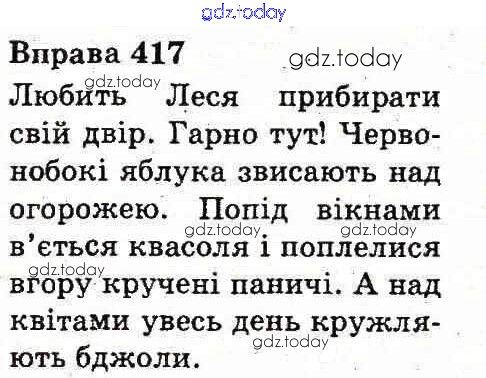 На страницах сайта gdz.today вы найдете учебный и вспомогательный материал, направленный на улучшения знаний школьной программы. ГДЗ - онлайн мир знаний Рішення до Вправи 417 Учебнику по Украинскому языку для 3 класса Вашуленко Украина 2013
