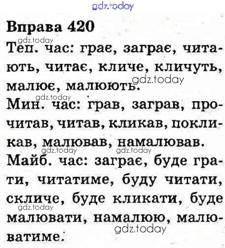 На страницах сайта gdz.today вы найдете учебный и вспомогательный материал, направленный на улучшения знаний школьной программы. ГДЗ - онлайн мир знаний Рішення до Вправи 420 Учебнику по Украинскому языку для 3 класса Вашуленко Украина 2013