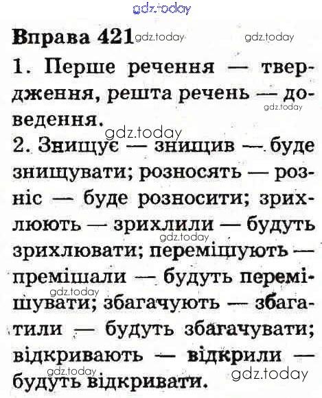 На страницах сайта gdz.today вы найдете учебный и вспомогательный материал, направленный на улучшения знаний школьной программы. ГДЗ - онлайн мир знаний Рішення до Вправи 421 Учебнику по Украинскому языку для 3 класса Вашуленко Украина 2013