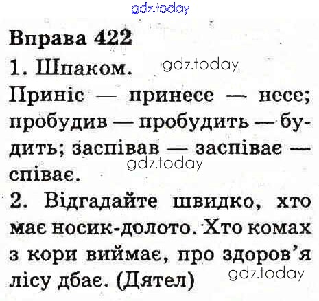 На страницах сайта gdz.today вы найдете учебный и вспомогательный материал, направленный на улучшения знаний школьной программы. ГДЗ - онлайн мир знаний Рішення до Вправи 422 Учебнику по Украинскому языку для 3 класса Вашуленко Украина 2013