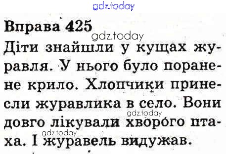 На страницах сайта gdz.today вы найдете учебный и вспомогательный материал, направленный на улучшения знаний школьной программы. ГДЗ - онлайн мир знаний Рішення до Вправи 425 Учебнику по Украинскому языку для 3 класса Вашуленко Украина 2013