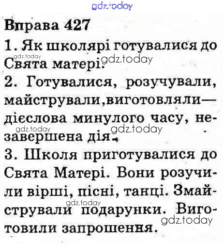 На страницах сайта gdz.today вы найдете учебный и вспомогательный материал, направленный на улучшения знаний школьной программы. ГДЗ - онлайн мир знаний Рішення до Вправи 427 Учебнику по Украинскому языку для 3 класса Вашуленко Украина 2013