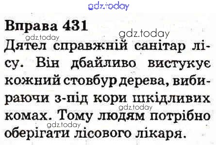 На страницах сайта gdz.today вы найдете учебный и вспомогательный материал, направленный на улучшения знаний школьной программы. ГДЗ - онлайн мир знаний Рішення до Вправи 431 Учебнику по Украинскому языку для 3 класса Вашуленко Украина 2013