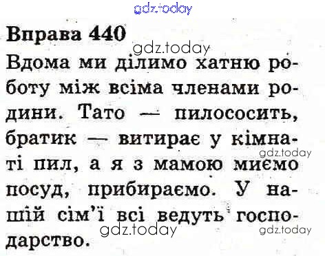 На страницах сайта gdz.today вы найдете учебный и вспомогательный материал, направленный на улучшения знаний школьной программы. ГДЗ - онлайн мир знаний Рішення до Вправи 440 Учебнику по Украинскому языку для 3 класса Вашуленко Украина 2013