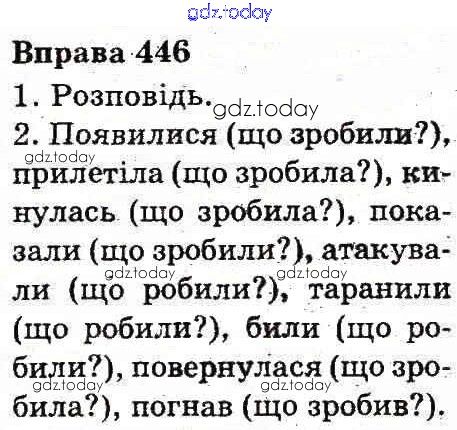 На страницах сайта gdz.today вы найдете учебный и вспомогательный материал, направленный на улучшения знаний школьной программы. ГДЗ - онлайн мир знаний Рішення до Вправи 446 Учебнику по Украинскому языку для 3 класса Вашуленко Украина 2013