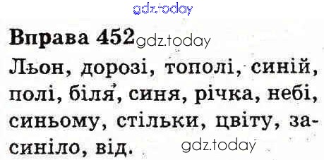 На страницах сайта gdz.today вы найдете учебный и вспомогательный материал, направленный на улучшения знаний школьной программы. ГДЗ - онлайн мир знаний Рішення до Вправи 452 Учебнику по Украинскому языку для 3 класса Вашуленко Украина 2013