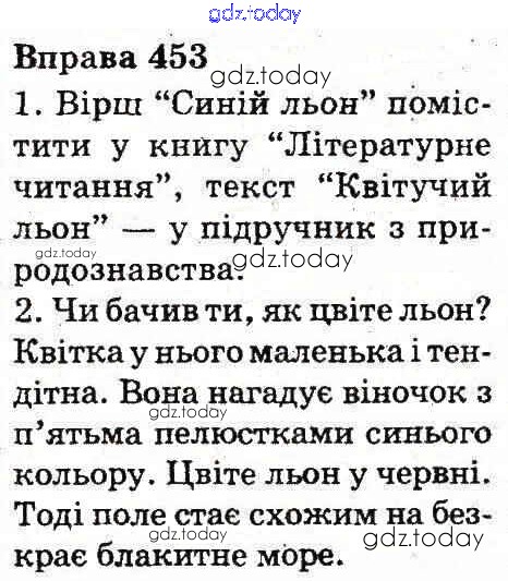 На страницах сайта gdz.today вы найдете учебный и вспомогательный материал, направленный на улучшения знаний школьной программы. ГДЗ - онлайн мир знаний Рішення до Вправи 453 Учебнику по Украинскому языку для 3 класса Вашуленко Украина 2013