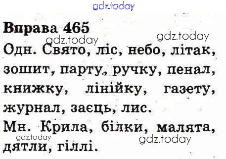 На страницах сайта gdz.today вы найдете учебный и вспомогательный материал, направленный на улучшения знаний школьной программы. ГДЗ - онлайн мир знаний Рішення до Вправи 465 Учебнику по Украинскому языку для 3 класса Вашуленко Украина 2013