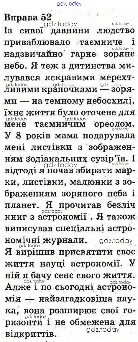 На страницах сайта gdz.today вы найдете учебный и вспомогательный материал, направленный на улучшения знаний школьной программы. ГДЗ - онлайн мир знаний Рішення до Вправи 52 Учебнику по Украинскому языку для 3 класса Вашуленко Украина 2013