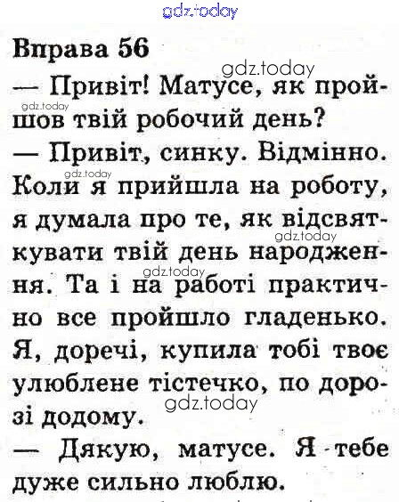 На страницах сайта gdz.today вы найдете учебный и вспомогательный материал, направленный на улучшения знаний школьной программы. ГДЗ - онлайн мир знаний Рішення до Вправи 56 Учебнику по Украинскому языку для 3 класса Вашуленко Украина 2013