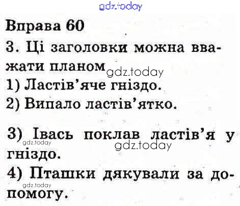 На страницах сайта gdz.today вы найдете учебный и вспомогательный материал, направленный на улучшения знаний школьной программы. ГДЗ - онлайн мир знаний Рішення до Вправи 60 Учебнику по Украинскому языку для 3 класса Вашуленко Украина 2013