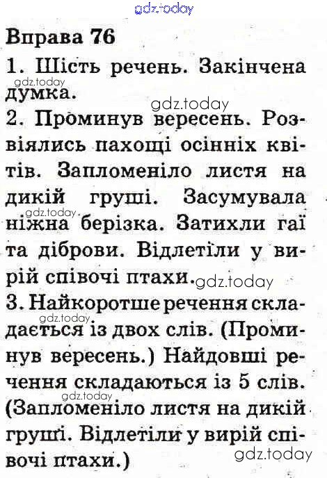 На страницах сайта gdz.today вы найдете учебный и вспомогательный материал, направленный на улучшения знаний школьной программы. ГДЗ - онлайн мир знаний Рішення до Вправи 76 Учебнику по Украинскому языку для 3 класса Вашуленко Украина 2013