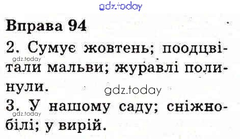 На страницах сайта gdz.today вы найдете учебный и вспомогательный материал, направленный на улучшения знаний школьной программы. ГДЗ - онлайн мир знаний Рішення до Вправи 94 Учебнику по Украинскому языку для 3 класса Вашуленко Украина 2013