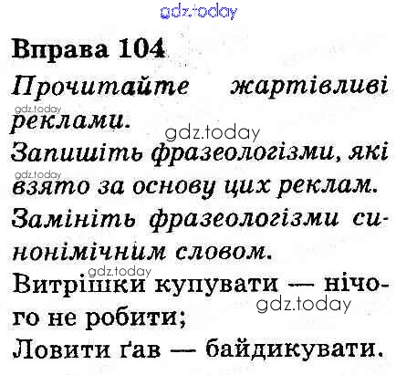 На страницах сайта gdz.today вы найдете учебный и вспомогательный материал, направленный на улучшения знаний школьной программы. ГДЗ - онлайн мир знаний Рішення до Вправи 104 Учебнику по Украинскому языку для 3 класса Захарийчук, Мовчун Грамота 2013
