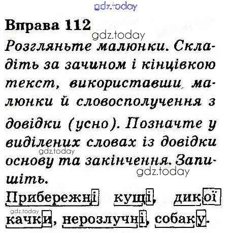 На страницах сайта gdz.today вы найдете учебный и вспомогательный материал, направленный на улучшения знаний школьной программы. ГДЗ - онлайн мир знаний Рішення до Вправи 112 Учебнику по Украинскому языку для 3 класса Захарийчук, Мовчун Грамота 2013