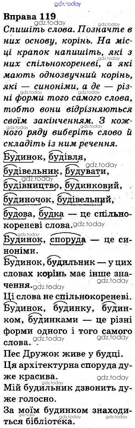 На страницах сайта gdz.today вы найдете учебный и вспомогательный материал, направленный на улучшения знаний школьной программы. ГДЗ - онлайн мир знаний Рішення до Вправи 119 Учебнику по Украинскому языку для 3 класса Захарийчук, Мовчун Грамота 2013