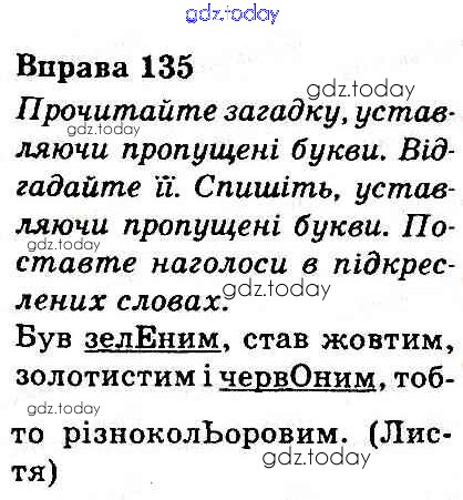 На страницах сайта gdz.today вы найдете учебный и вспомогательный материал, направленный на улучшения знаний школьной программы. ГДЗ - онлайн мир знаний Рішення до Вправи 135 Учебнику по Украинскому языку для 3 класса Захарийчук, Мовчун Грамота 2013