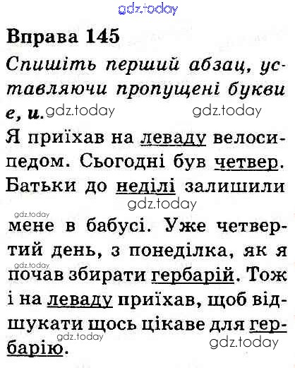На страницах сайта gdz.today вы найдете учебный и вспомогательный материал, направленный на улучшения знаний школьной программы. ГДЗ - онлайн мир знаний Рішення до Вправи 145 Учебнику по Украинскому языку для 3 класса Захарийчук, Мовчун Грамота 2013