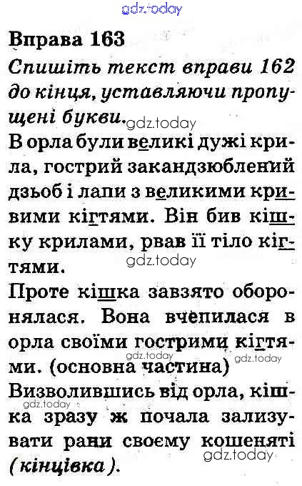 На страницах сайта gdz.today вы найдете учебный и вспомогательный материал, направленный на улучшения знаний школьной программы. ГДЗ - онлайн мир знаний Рішення до Вправи 163 Учебнику по Украинскому языку для 3 класса Захарийчук, Мовчун Грамота 2013