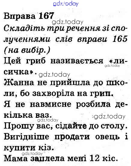На страницах сайта gdz.today вы найдете учебный и вспомогательный материал, направленный на улучшения знаний школьной программы. ГДЗ - онлайн мир знаний Рішення до Вправи 167 Учебнику по Украинскому языку для 3 класса Захарийчук, Мовчун Грамота 2013