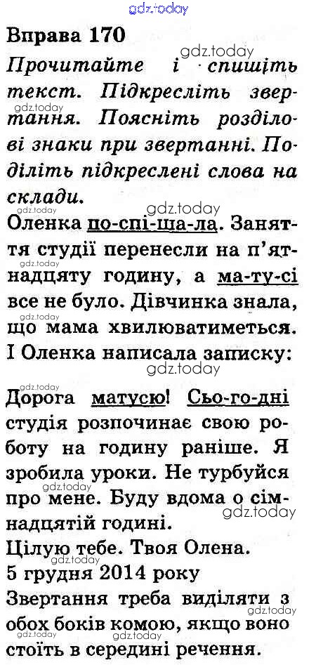 На страницах сайта gdz.today вы найдете учебный и вспомогательный материал, направленный на улучшения знаний школьной программы. ГДЗ - онлайн мир знаний Рішення до Вправи 170 Учебнику по Украинскому языку для 3 класса Захарийчук, Мовчун Грамота 2013