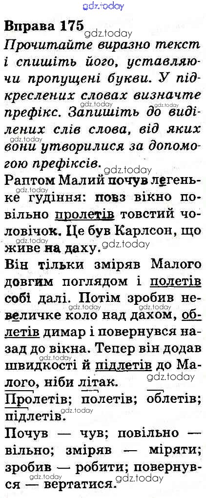 На страницах сайта gdz.today вы найдете учебный и вспомогательный материал, направленный на улучшения знаний школьной программы. ГДЗ - онлайн мир знаний Рішення до Вправи 175 Учебнику по Украинскому языку для 3 класса Захарийчук, Мовчун Грамота 2013