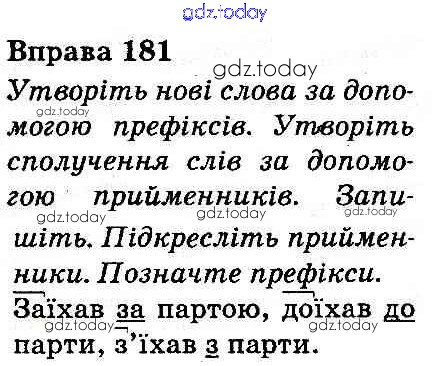На страницах сайта gdz.today вы найдете учебный и вспомогательный материал, направленный на улучшения знаний школьной программы. ГДЗ - онлайн мир знаний Рішення до Вправи 181 Учебнику по Украинскому языку для 3 класса Захарийчук, Мовчун Грамота 2013