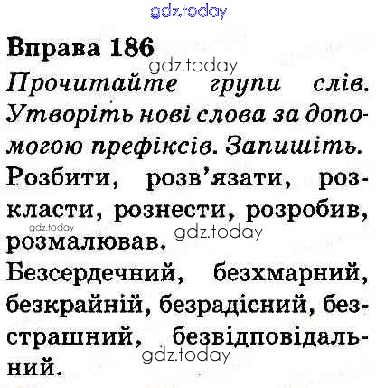 На страницах сайта gdz.today вы найдете учебный и вспомогательный материал, направленный на улучшения знаний школьной программы. ГДЗ - онлайн мир знаний Рішення до Вправи 186 Учебнику по Украинскому языку для 3 класса Захарийчук, Мовчун Грамота 2013