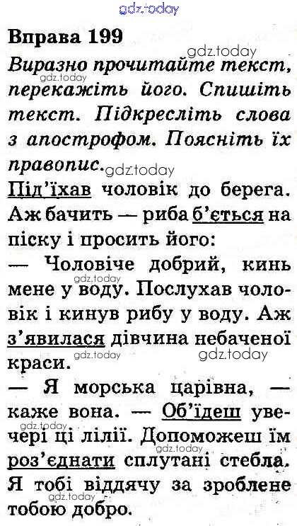 На страницах сайта gdz.today вы найдете учебный и вспомогательный материал, направленный на улучшения знаний школьной программы. ГДЗ - онлайн мир знаний Рішення до Вправи 199 Учебнику по Украинскому языку для 3 класса Захарийчук, Мовчун Грамота 2013