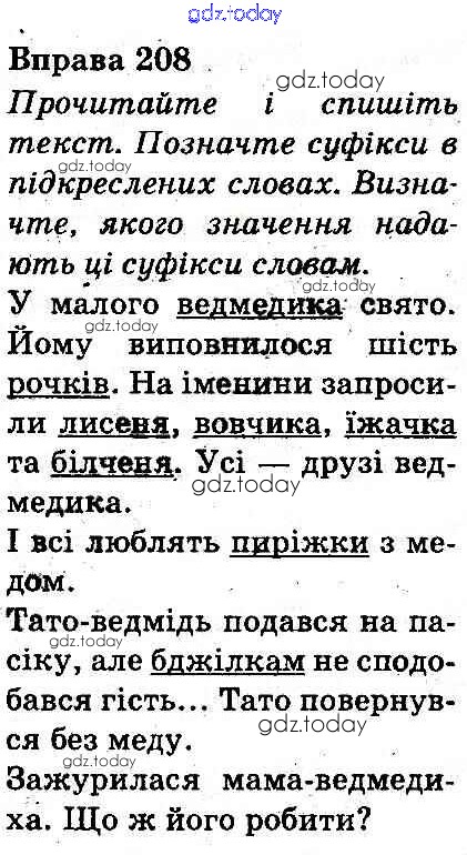 На страницах сайта gdz.today вы найдете учебный и вспомогательный материал, направленный на улучшения знаний школьной программы. ГДЗ - онлайн мир знаний Рішення до Вправи 208 Учебнику по Украинскому языку для 3 класса Захарийчук, Мовчун Грамота 2013