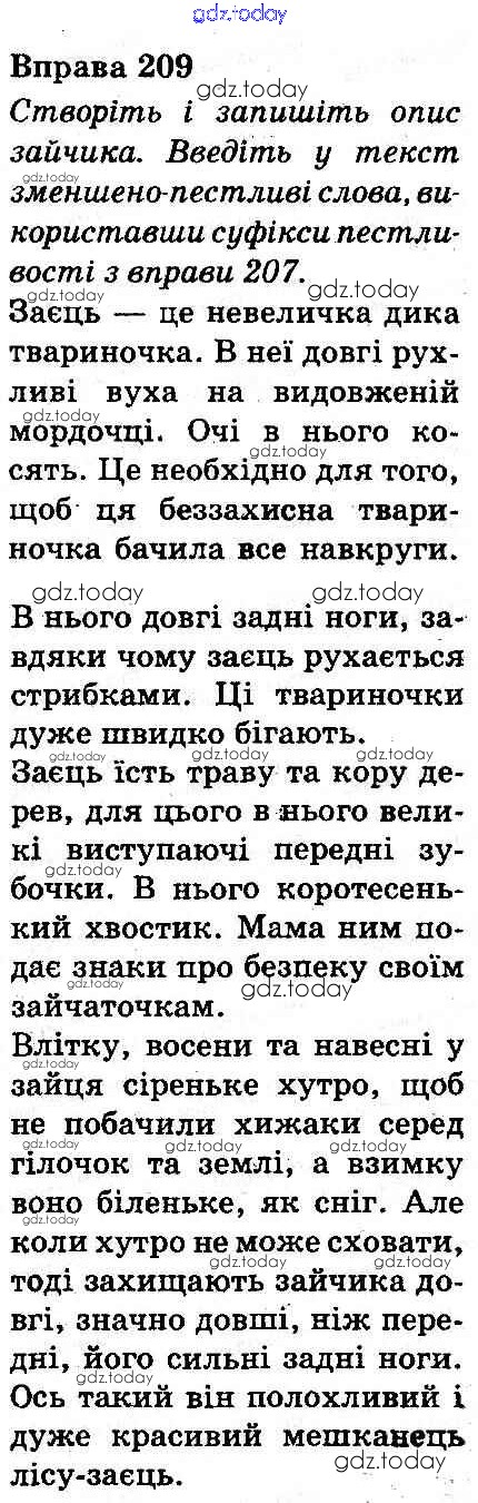 На страницах сайта gdz.today вы найдете учебный и вспомогательный материал, направленный на улучшения знаний школьной программы. ГДЗ - онлайн мир знаний Рішення до Вправи 209 Учебнику по Украинскому языку для 3 класса Захарийчук, Мовчун Грамота 2013